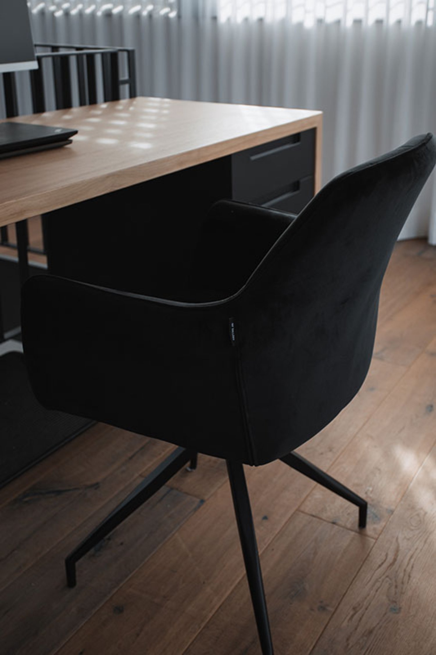Bei diesem Projekt durfte die WOHNLÖWIN unter anderem den Arbeitsbereich neu gestalten.Passend zum dunklen Metall der Treppe hat diese farbliche Akzente an der Wand gesetzt. Außerdem wurde die tiefe, satte Farbe im Schreibtisch und beim Bürostuhl wiederaufgegriffen. So entstand in dem lichtdurchfluteten Haus ein einheitliches Ensemble.
