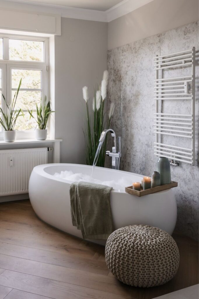 Erleben Sie pure Entspannung in unserem traumhaften, maßgeschneiderten Badezimmer.